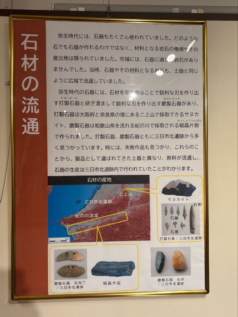 こちらは二上山で採れるサヌカイトや紀ノ川流域で採取される結晶片岩についての説明です。