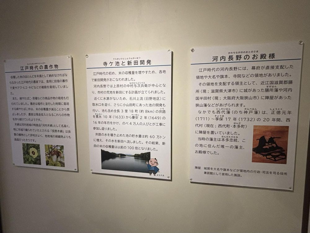 江戸時代には西代藩が存在し、殿様がいたことや寺ヶ池が造られて新田が開発されたこと、さらに創作物に関する説明がありました。