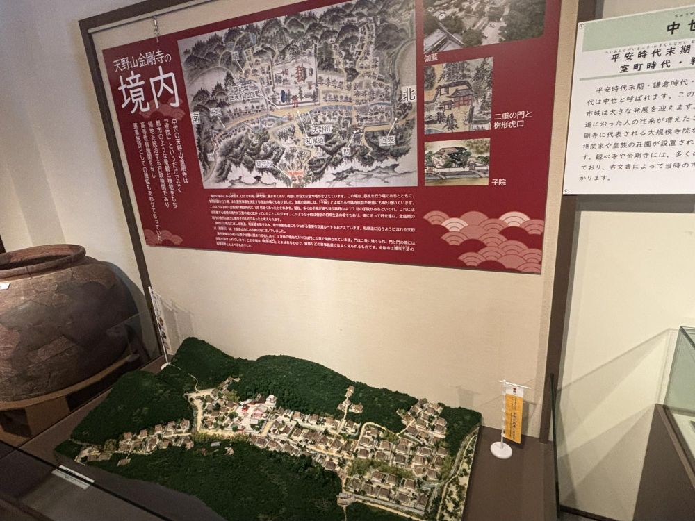 そして、先ほども触れましたが、中世をイメージできるようにジオラマが多く展示してあります。画像は中世の観心寺をイメージして作られています。