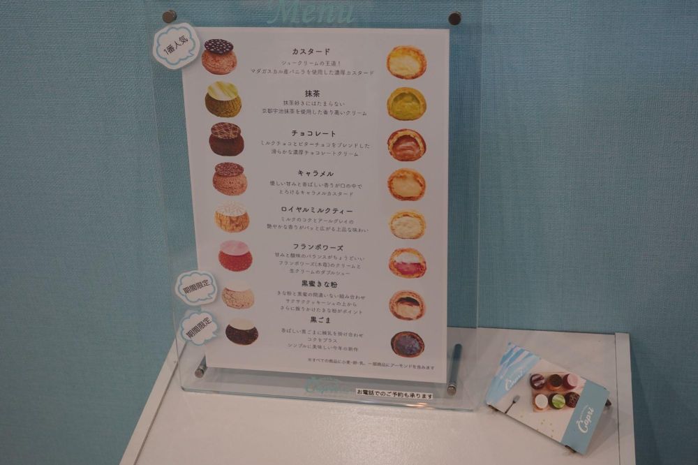 シュークリームのメニューです。8種類のうち、季節限定商品が2つの構成です。