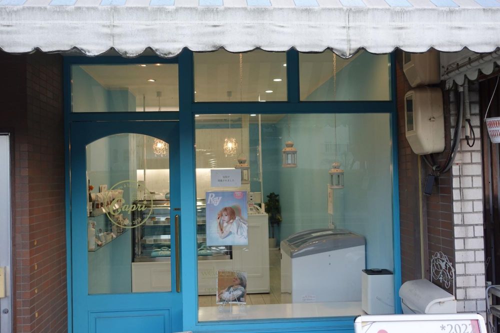1号店の千代田店は、角島オーナーがひとりで運営しようと始めたために、非常に手狭でした。しかし、カプリブルーとでも名付けたくなるようなこの色合いを前面に出したお店と、そこで提供されるシュークリームは若者に大きく受けることに。