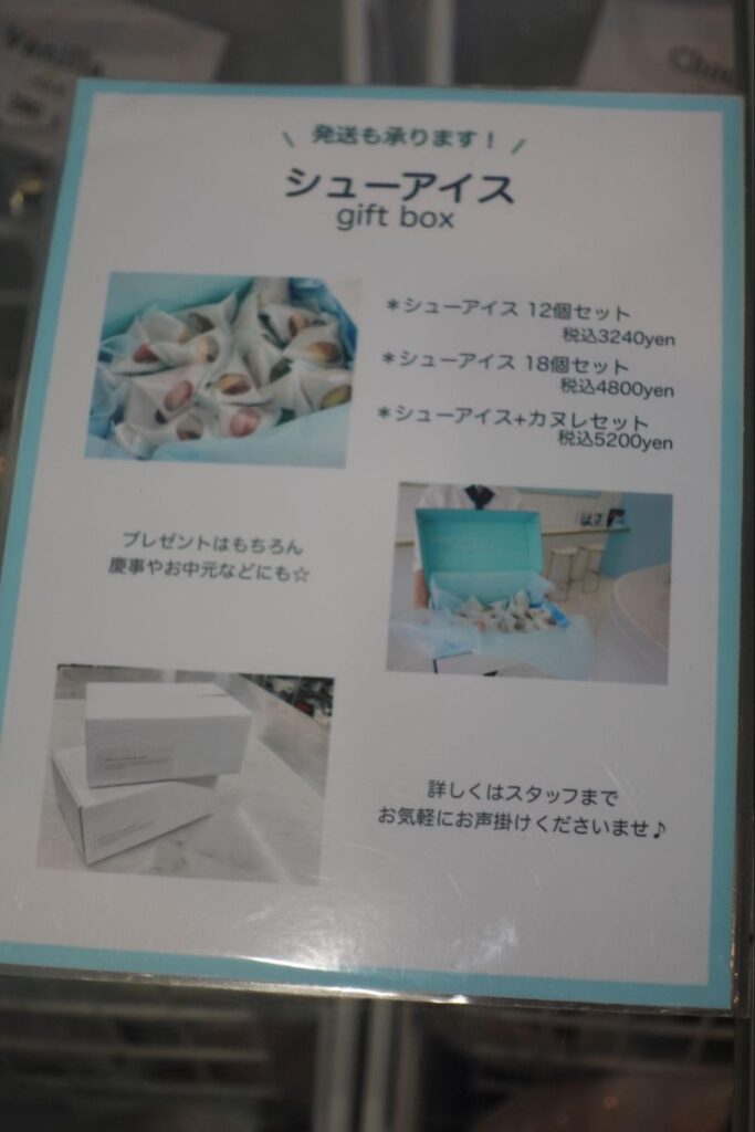 商品は、メインのシュークリームのほか、カヌレ、プチシュー、それからシューアイスと多彩です。さっそく入ってみましょう。