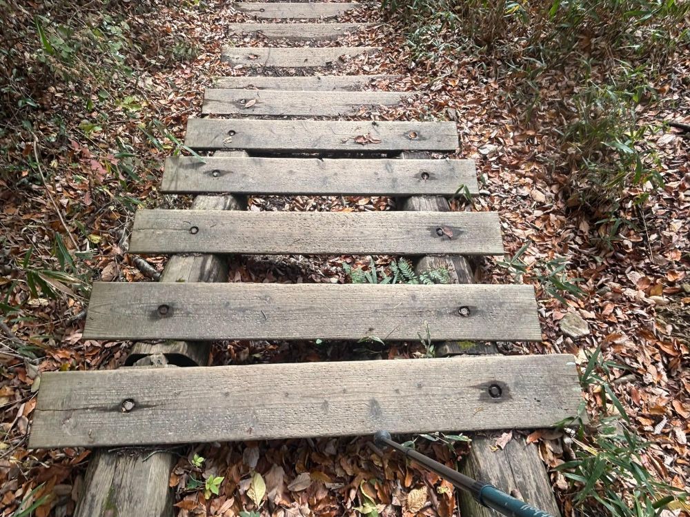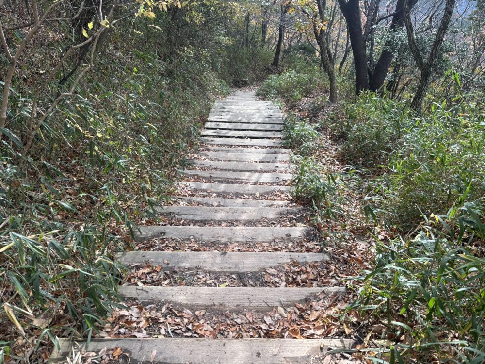 山頂までほぼこの階段が続いていました。ちなみに画像は上から振り返った様子です。
