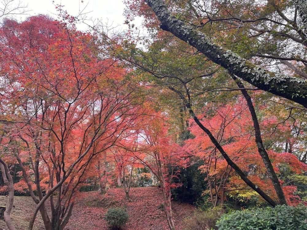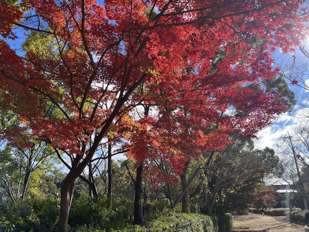 河内長野の紅葉の名所といえば、長野公園・奥河内もみじ公園という名前がついている延命寺が最初に思い浮かびます。チャリティ会をこの時期に行っていますが、紅葉はその後、11月下旬くらいがピークなことが多いです。12月の初めごろは紅葉のじゅうたんのほうがインパクトがあるかもしれません。