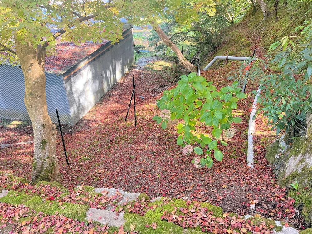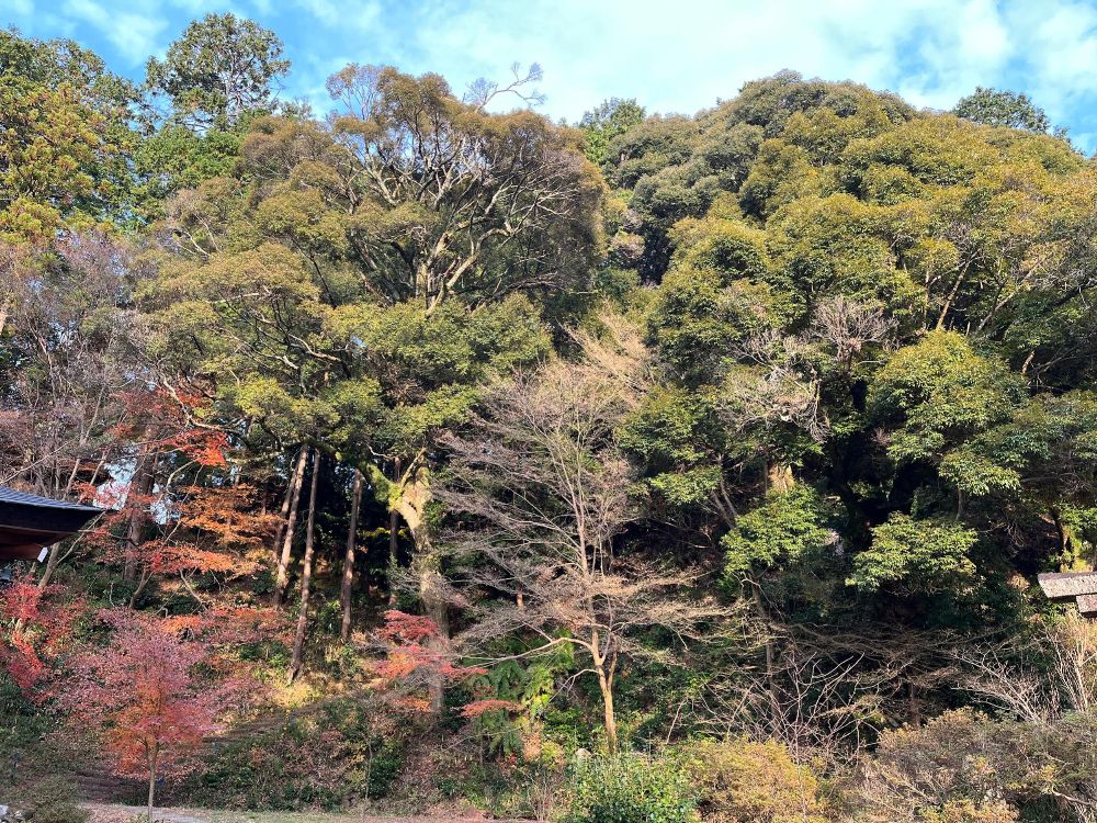 西恩寺は千早赤阪村の紅葉スポットです。今年初めて訪問したのですが、これから色づくタイミングだったので、画像はまだ青い葉が多いです。12月になれば、床一面紅葉のじゅうたんで覆われているとのこと。この道もさぞや美しくなっているのでは?