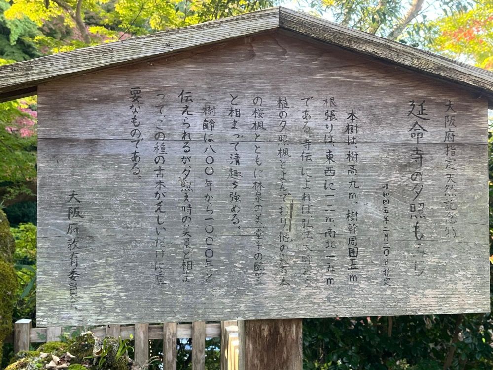 まだ延命寺には大阪府指定天然記念物の夕照もみじがありますね。大きなコブのような幹をした大木は樹齢800年以上あるということです。