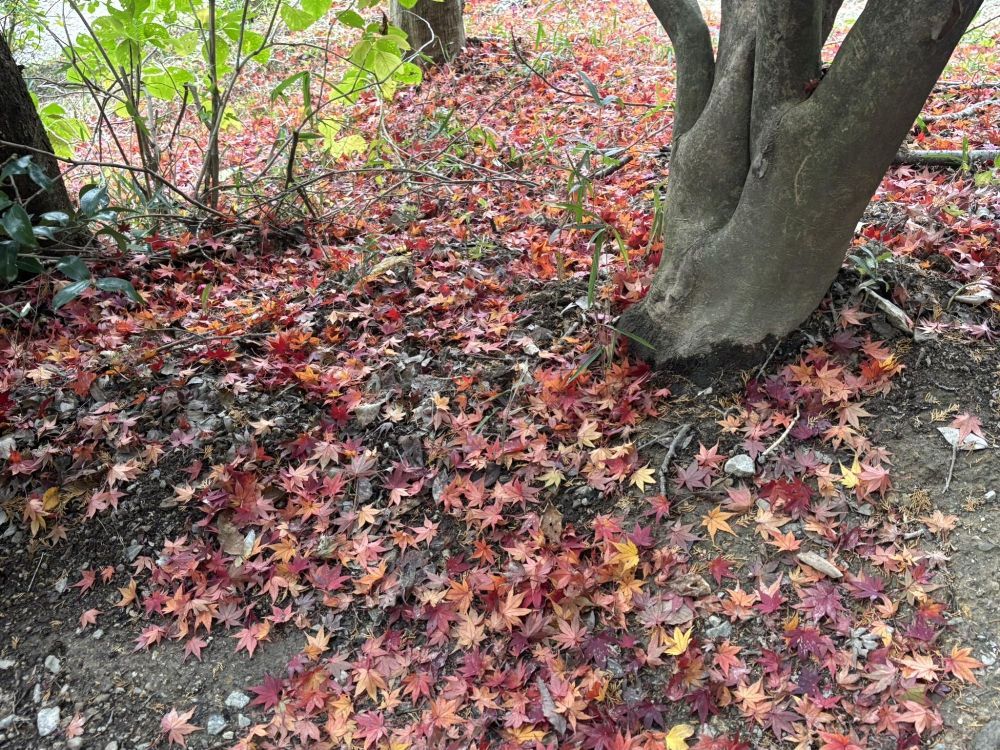 もう遅いかなと思いつつ、この前の二上山のもみじの様子を見る限り、もう少し楽しめそうと思い、まとめ記事を書いてみました。上の画像は二上山で撮影したものですが、紅葉した葉が落ちてじゅうたんのようになる「散り紅葉」を愛でられるのは、今の時期かもしれません。