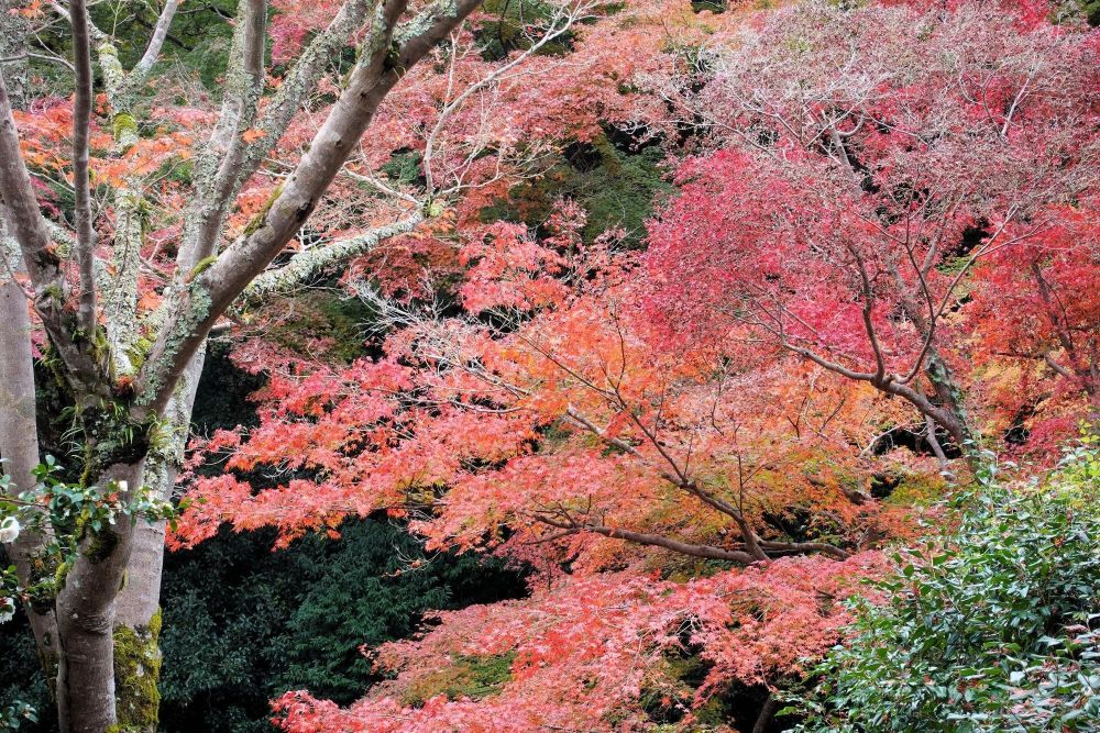 河合寺の境内には入れませんが周りはアジサイの有名な場所で「奥河内あじさい公園」という名前がついています。しかし紅葉も侮れないほど美しく、近所の人しか知らないかもしれない穴場スポットです。