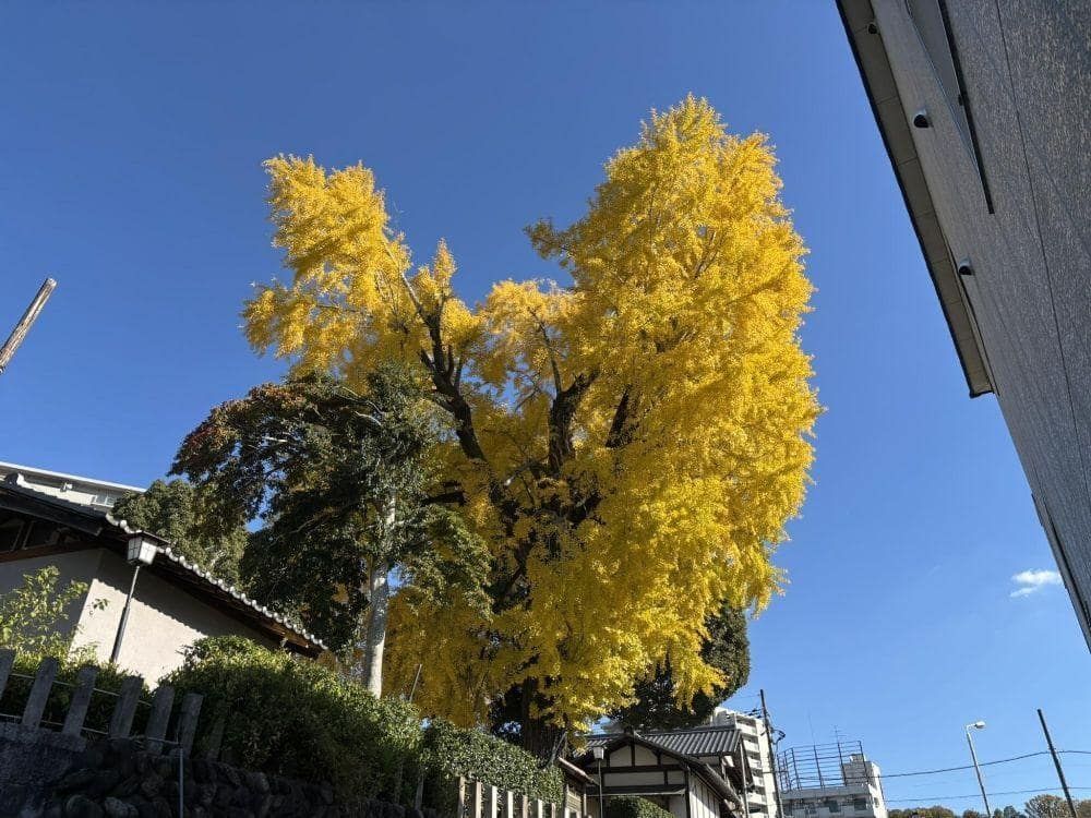 河内長野駅から徒歩3分の所にある長野神社、駅近くのパワースポットは普段はとても静かです。そしてここにはイチョウの大木があります。今年の雲がほとんど無い晴れ間に撮影しましたが、とても立派で、まさに映えスポットでした。