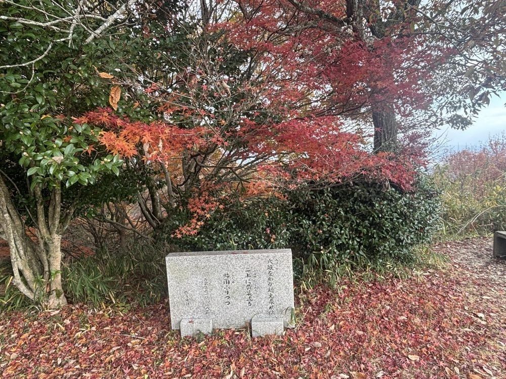 雌岳山頂には万葉集の歌碑がありました。作者は不明のものということですが、意味として大阪の峠を越えると二上山では、もみじ葉が流れるように散っている。それも晩秋から初頭にかけて降る時雨(しぐれ)が吹ている中でということなので、まさに今の季節を詠んでいることになります。