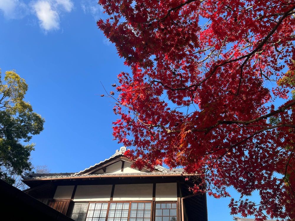 楠妣庵観音寺(なんぴあんんかんのんじ)は、富田林の最南部、甘南備(かんなび)にあります。楠木正成の妻、久子夫人ゆかりの地で、南北朝時代からの歴史があるものの建物は大正時代に建てられたものです。周りの紅葉は「紅」が鮮明で目が吸い込まれそうなくらいです。山奥まで来る甲斐を感じました。