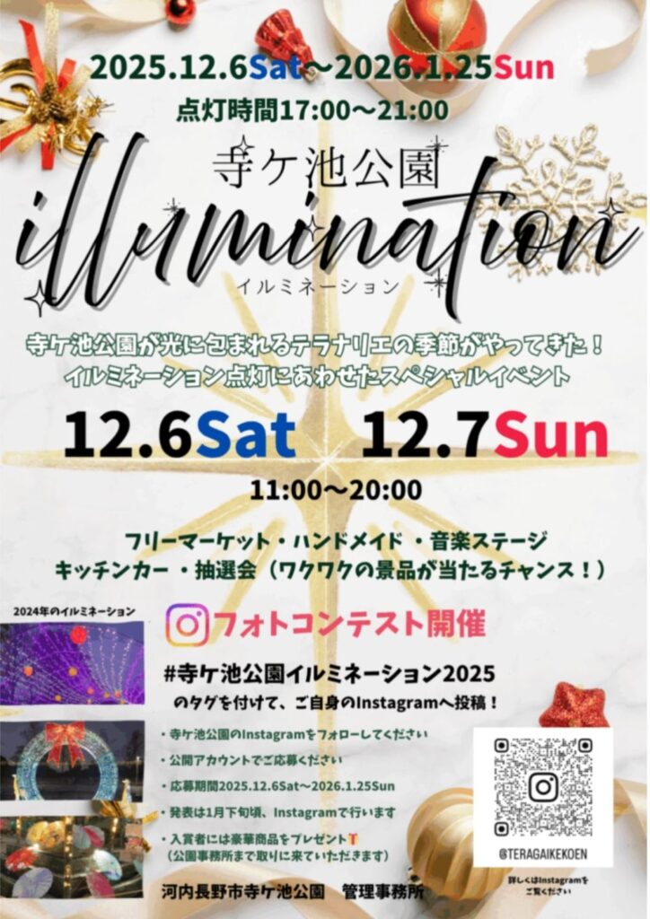 【河内長野市】今年も寺ヶ池公園でイルミが始まります!12月6、7日は同時開催として「和みまるしぇ」も(オリジナル)