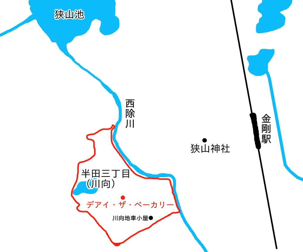 そんな川向の歴史をおさらいしたところで、さやりんバス(循環バス)川向バス停の前にあるのがデアイ・ザ・ベーカリーさんです。大阪狭山店のほか和泉店と奈良店(田原本)にお店があり、本店は和泉市です。しかし、大阪狭山店だけは後ろに「&CAFE(カフェ)」とついており、イートインが楽しめます。