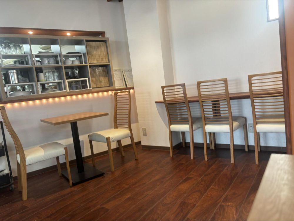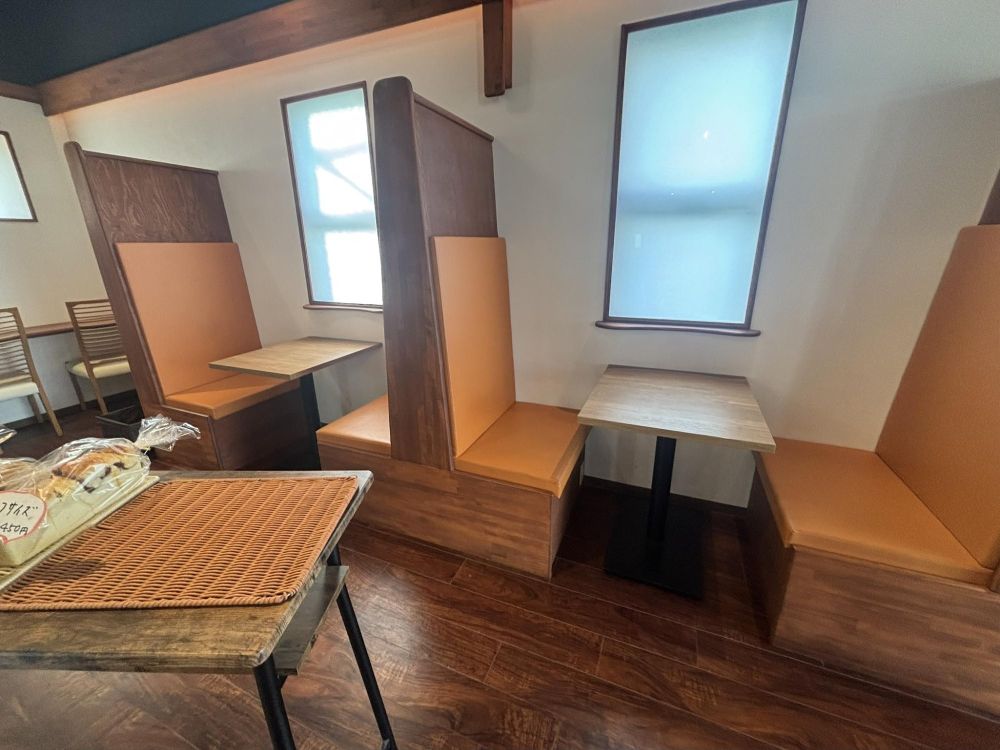 イートインスペースです。イートインと聞けばコンビニなどにある印象が強いので、簡易的なイスとテーブルかと思いきや立派なイスとテーブルです。