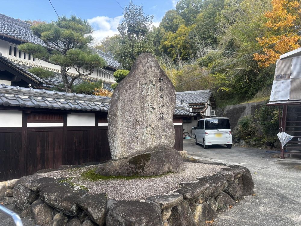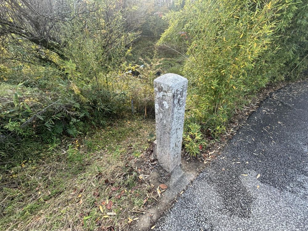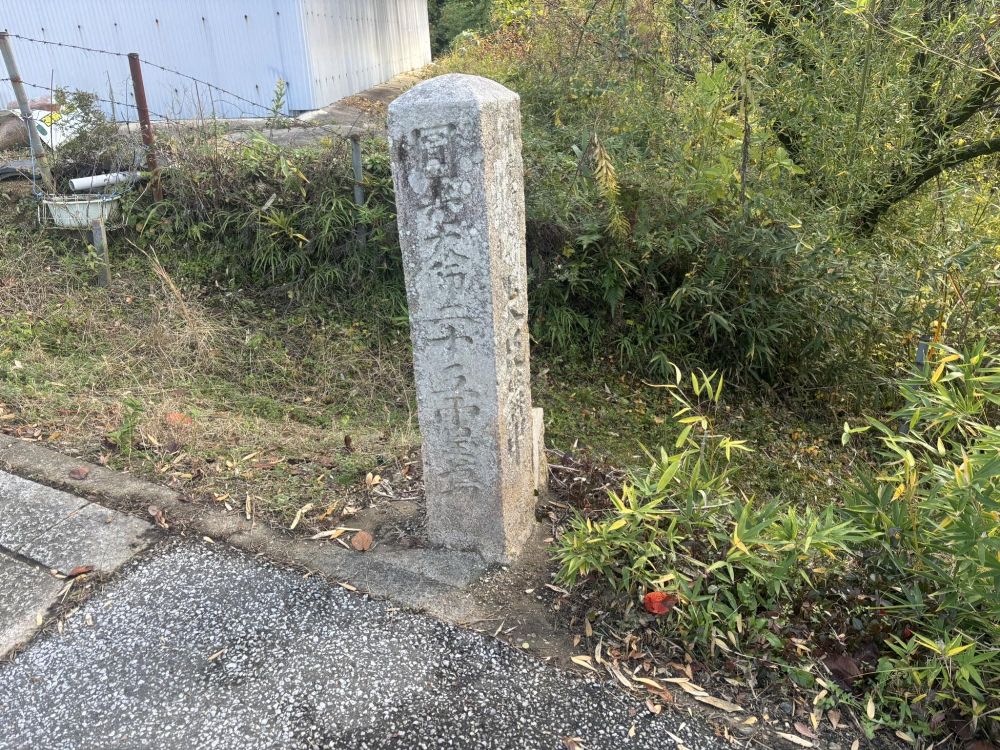 石碑を見つけました。「圓光大師二十五霊場」と刻まれています。これは浄土宗を開いた法然ゆかりの寺院を巡る霊場巡拝です。太子町には霊場はありませんが、隣の奈良県葛城市當麻にある當麻寺奥院が第九番霊場になっており、竹内街道の途中から二上山の中腹を通っていく道があることからそれに関する石碑と考えられます。