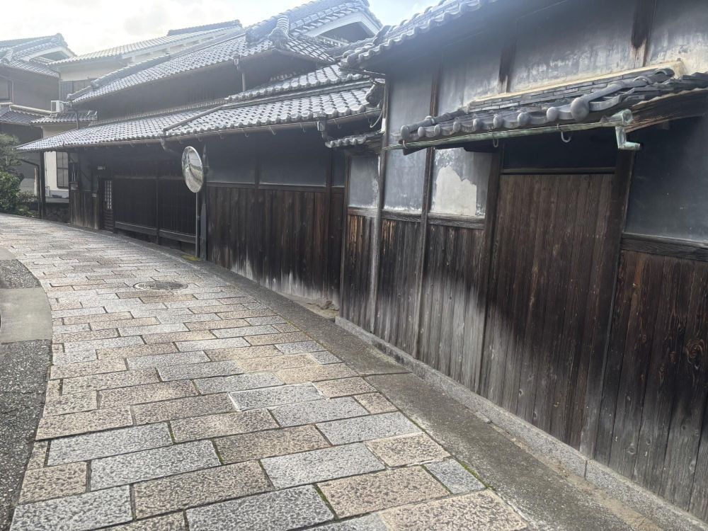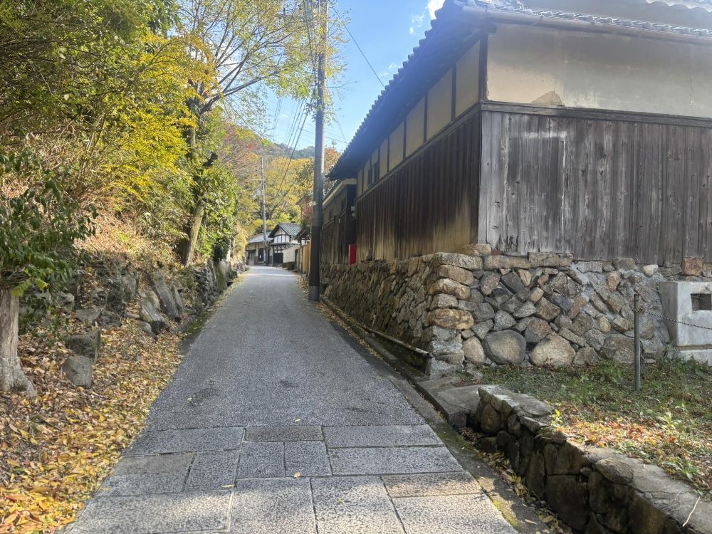 ときおり石畳の道があり観光の雰囲気を感じますが、富田林寺内町同様に生活の道です。左側に地蔵堂がありますね。