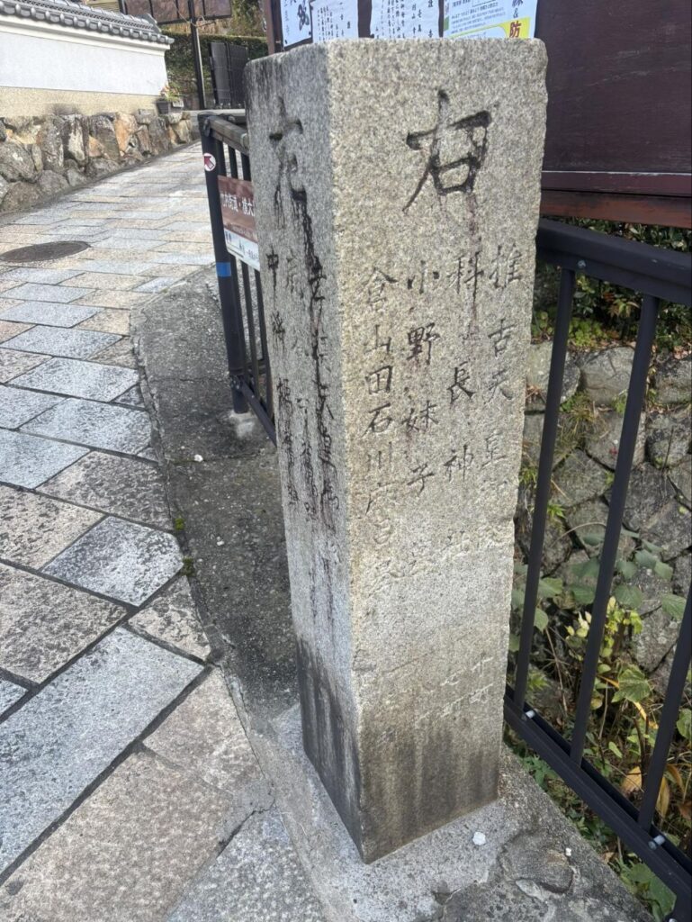 昔からある石碑ですが、このあたりは天皇陵や小野妹子の墓が多いことから、たくさんの行先が刻まれていました。