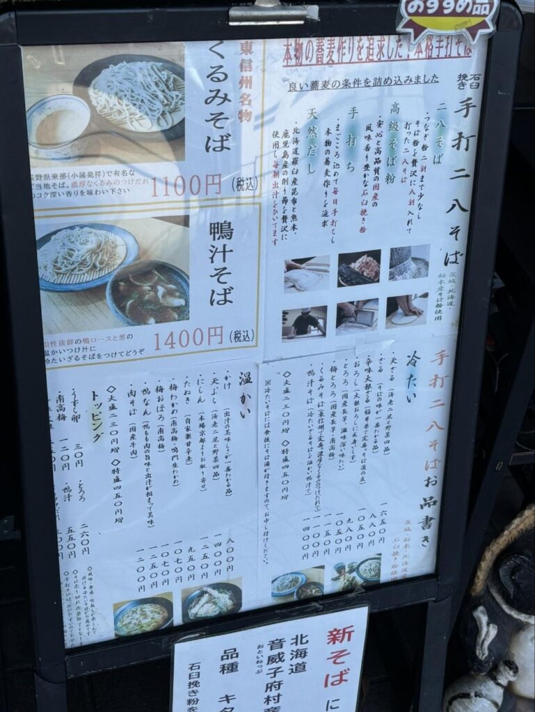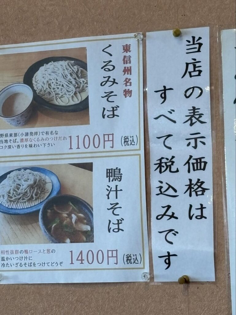といいながら、選べるのは限られています。東信州名物のくるみそばも気になりましたが、下の鴨汁そばがもっと気になったので、今回はこちらを注文しました。