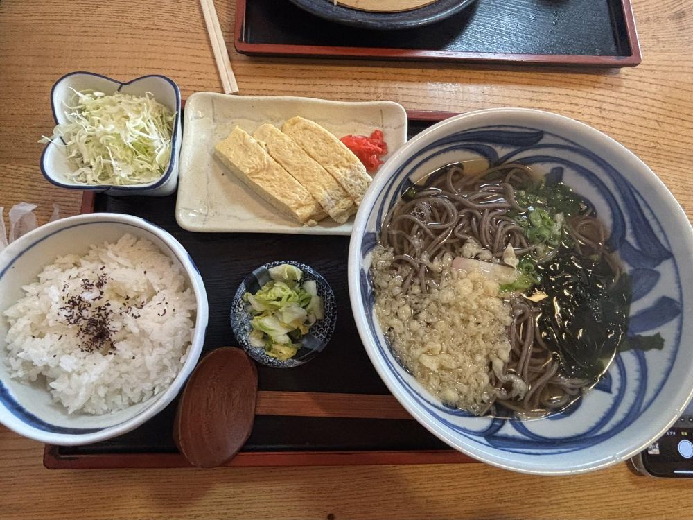 こちらが通常のそば、いろんなおそば屋さんで見かける色です。二八そばとは色が全く違う似て非なるもの。そばは手打ちの二八とは比較できませんが、とにかく出汁が美味しいです。かつご飯のこだわりもあって、いずれも美味しく一気に空腹を満たせてくれました。