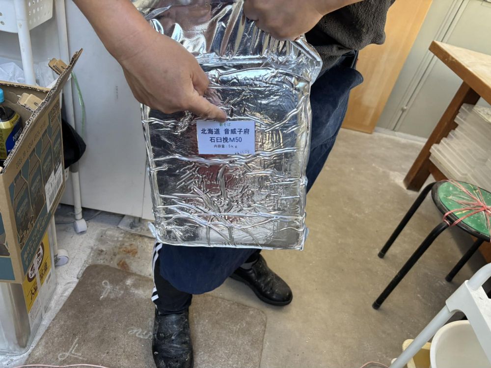 (真空パックで石臼挽のそば粉を仕入れています)