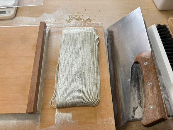 専用のそば包丁でそばをカットしていき、