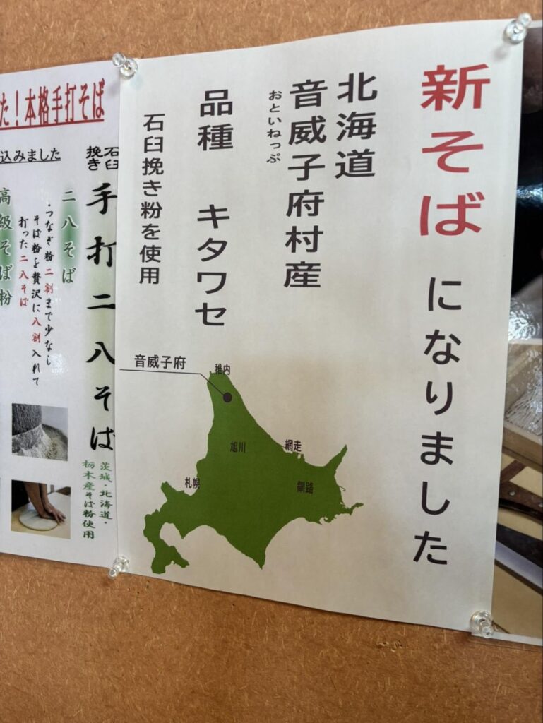 訪問時のそばは北海道の音威子府(おといねっぷ)産ということで、稚内のすぐ近くです。