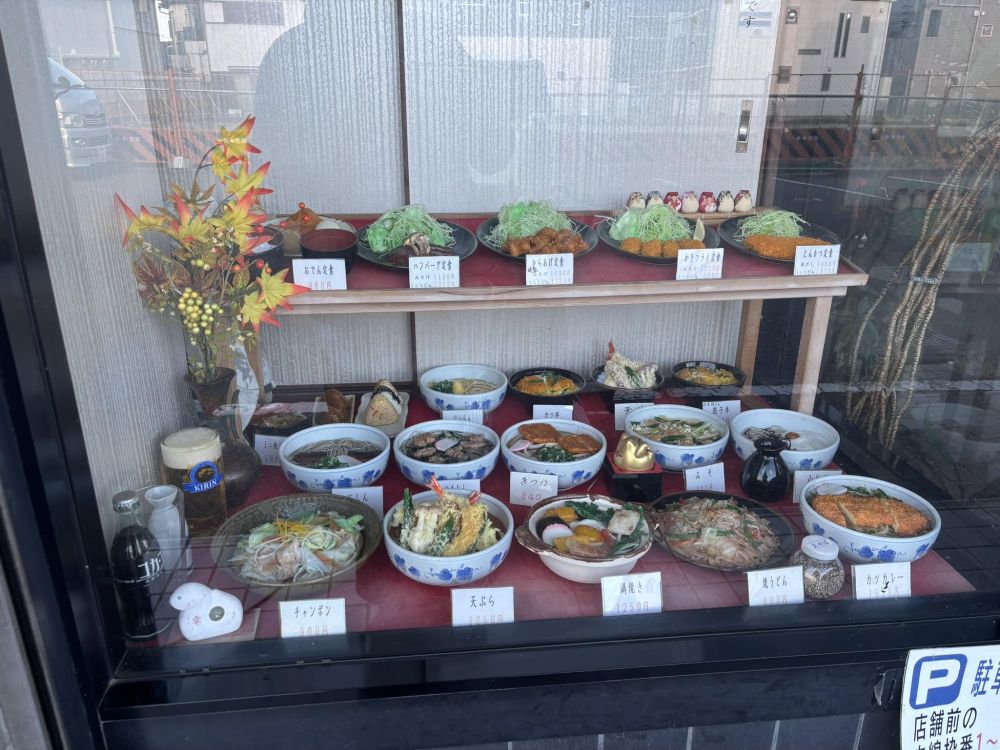 入口にはメニューの食品サンプルが並んでいます。こういうものがあるということは、歴史のあるお店というのがわかりますね。