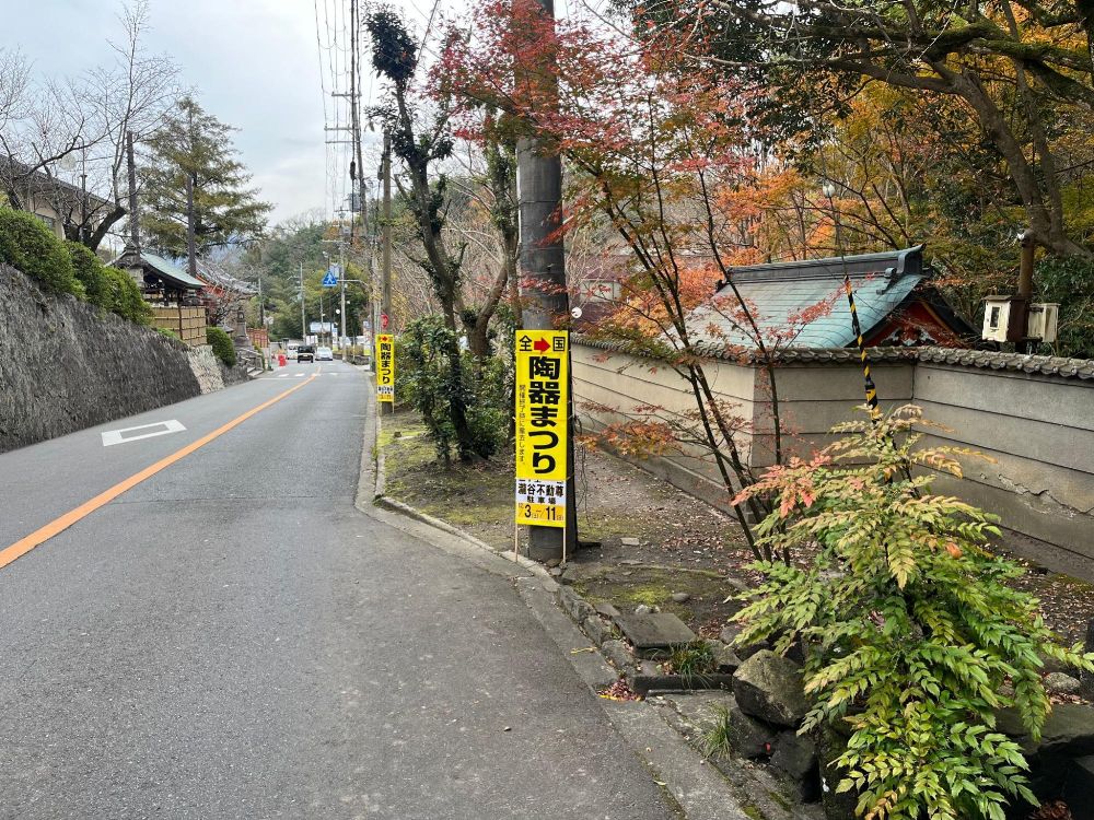 いつものように瀧谷不動尊に向かう坂を上っていくと、道案内のように随所に陶器まつりの看板がありますね。
