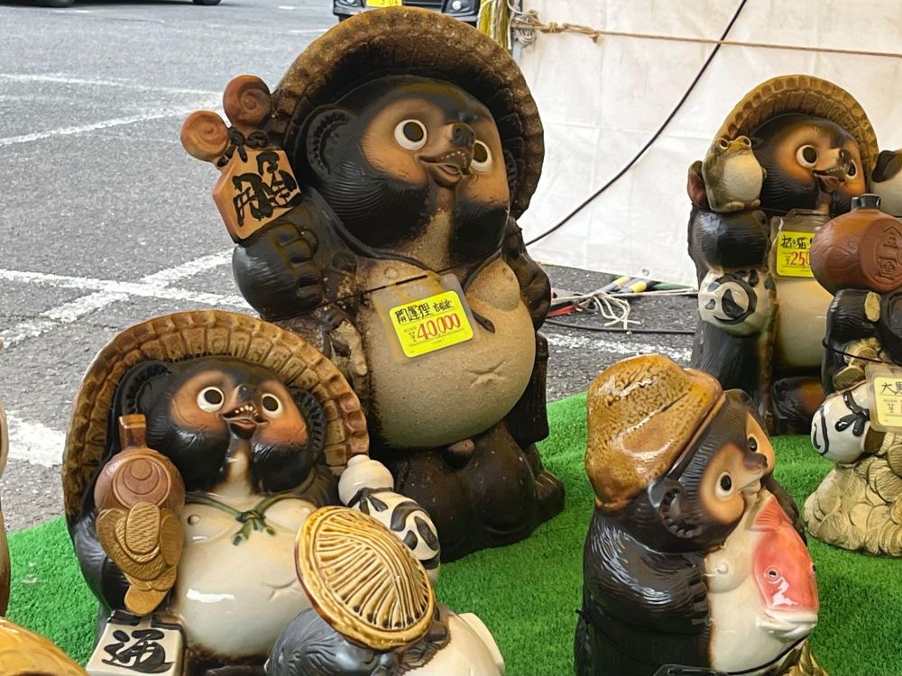 正面はこのようになっています。大小いろんな狸が販売されていますね。