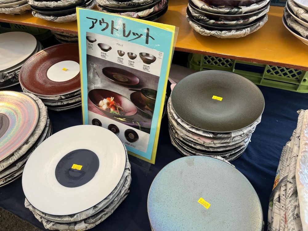 またアウトレットで、普段よりリーズナブルに手に入る皿や器もありました。