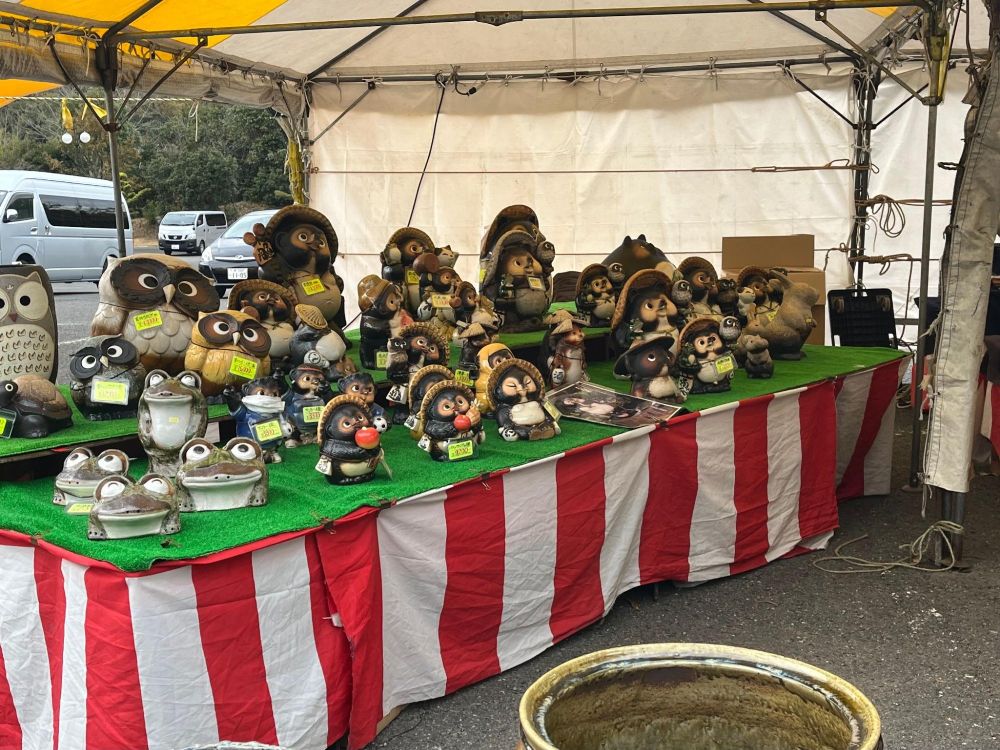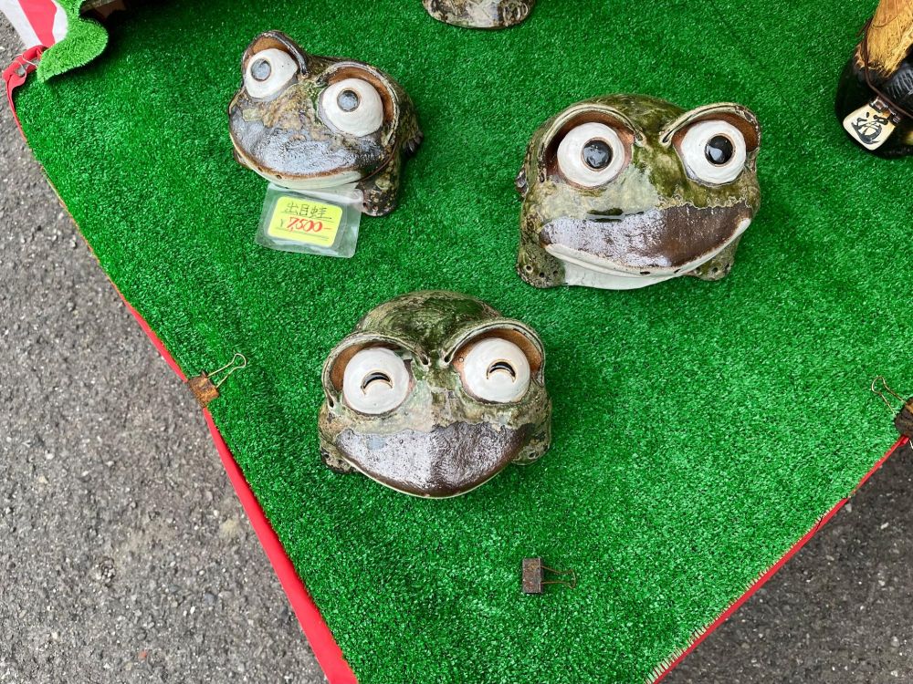 タヌキだけでなく、カエルも販売されていました。