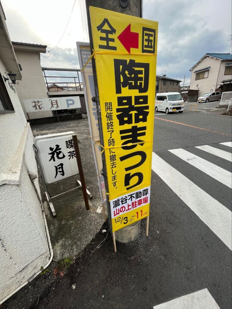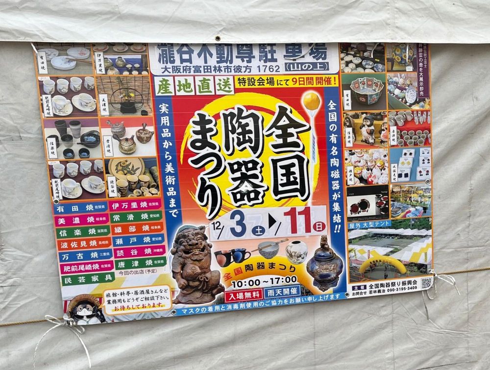 2025年12月9日現在、全国陶器まつりが滝谷不動尊で開催中です。12月14日までとのこと