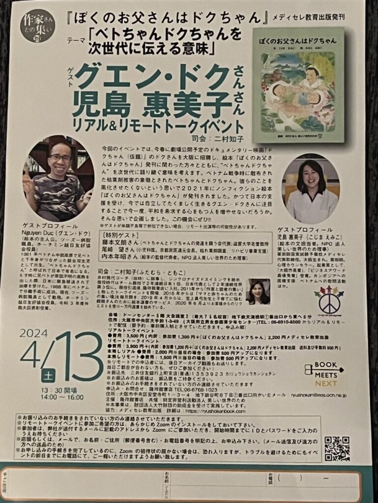 余談ですが、映画にしても絵本にしても「ドクちゃん」という表記があります。ドクさんは今年42歳で、かつ子どもが父親に「ちやん」をつけるのには少し抵抗を感じますが、どうしても昔日本で話題になった双子の赤ちゃん「べトちやん、ドクちゃん」と呼ばれていた流れからこうなったのでしょう。