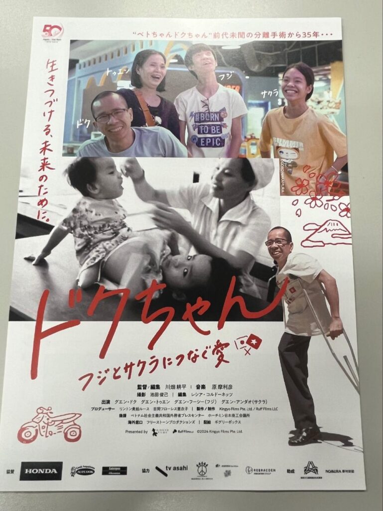 そしてGWの後半には、ベトナムのグエン・ドクさんのドキュメンタリー映画「ドクちゃん、フジとサクラにつなぐ愛」が上映されます。監督が川畑耕平さんで、プロデューサーがシンガポールを拠点としているKINGYO FILMS(外部リンク)のリントン貴絵ルース代表(以下、ルースさん)と吉岡フローレス亜衣子さんです。