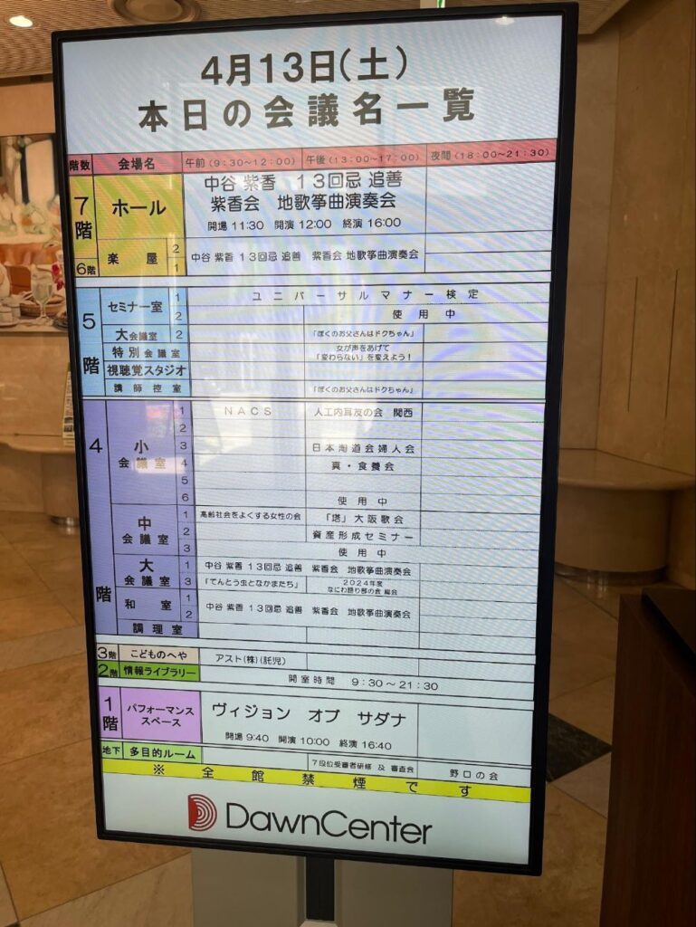 ドーンセンターの当日のスケジュールを見ます。