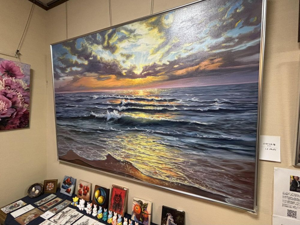 こちらの作品は「ウクライナの海(黒海又はアゾフ海)」を描いたもの。ニナさんによると休む間も惜しんで3・4日で仕上げたそうです。