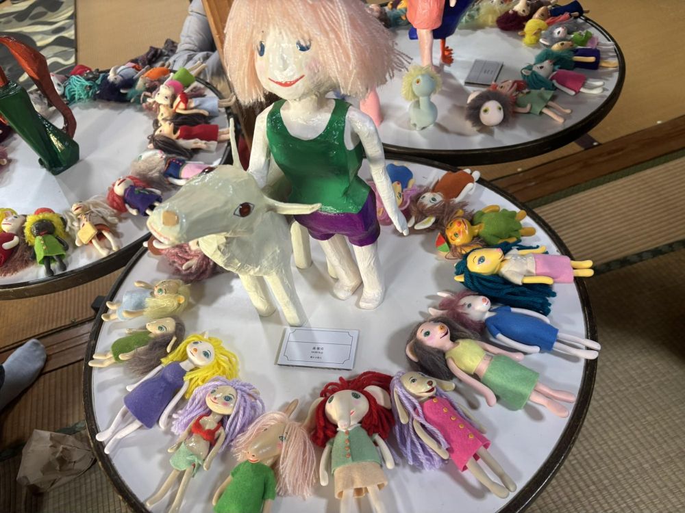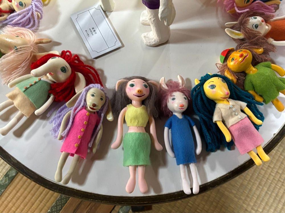 動物をイメージして擬人化した人形たち。「こちら自由に手に取って感覚を触ってください」と森さん、実際に作品に触れられるのは素敵ですね。