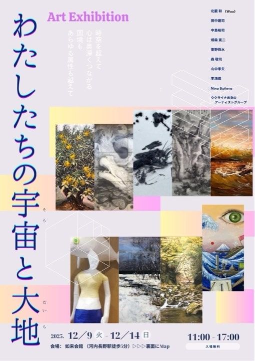 ということで、日本、台湾、ウクライナと3つの国の9人のアーティストとウクライナ出身のアーティストグループの作品が見られるわたしたちの宇宙と大地展をご紹介しました。様々なアーティストが集まった今回の展覧会の共通点を田平さんにお伺いすると、「良い人!」。実際にお話を伺った方々は確かにみんな「良い人」でした。