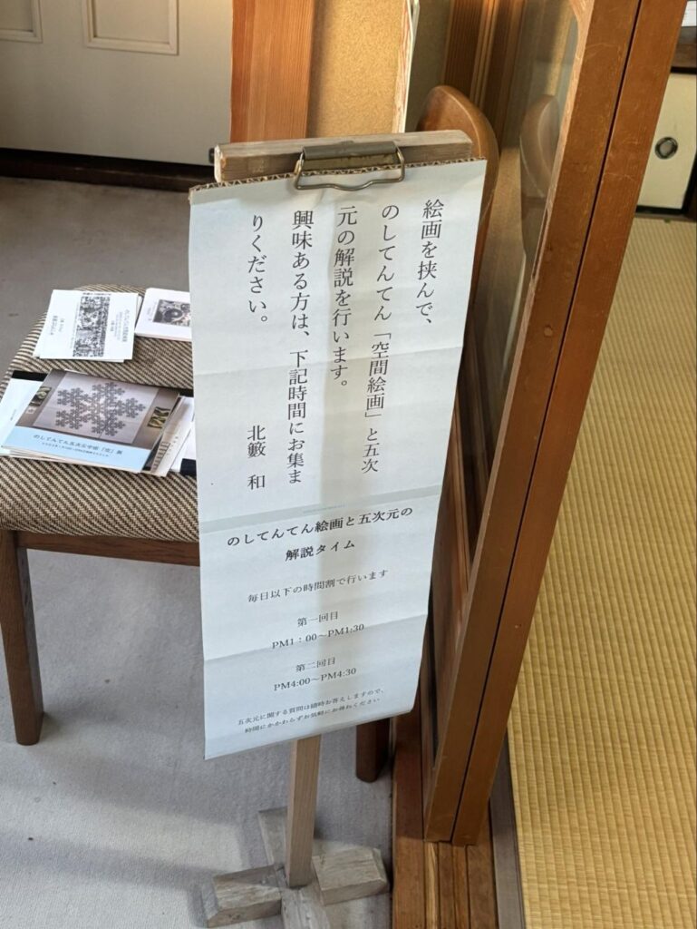 「のしてんてん」の五次元世界は非常に難しい考え方ですが、北藪さんが会期中、1日2回解説タイム(13:00~、16:00~ 30分程度)を設けています。興味のある方は解説タイムの時間に行って北藪さんの話を聞いてみてはいかがでしょう。