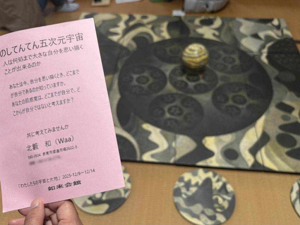 ということで、如来会館で14日まで行われている「わたしたちの宇宙と大地」展を紹介しました。入場は無料でどなたでも自由に見学ができます。如来会館の外観が気になっていてもなかなか入る機会が無いので、またとないチャンスです。そして「良い人」が集まった作品の数々をじっくりと眺めてみてはいかがでしょう。田平さんは毎日常駐しているそうです。