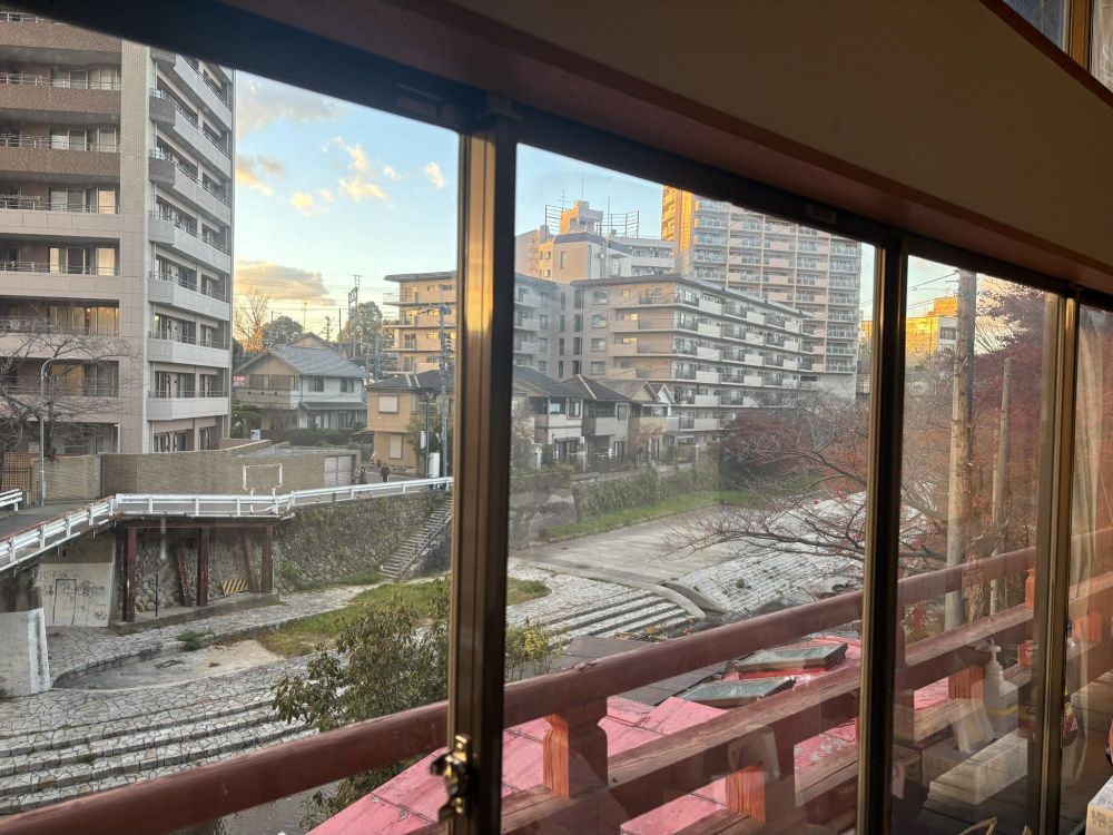 (如来会館から見える石川と天見川の合流点)