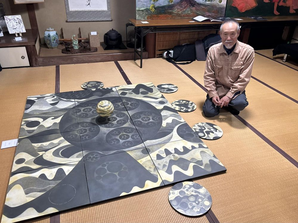 (空間絵画「のしてんてん」と北藪さん)