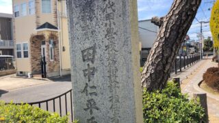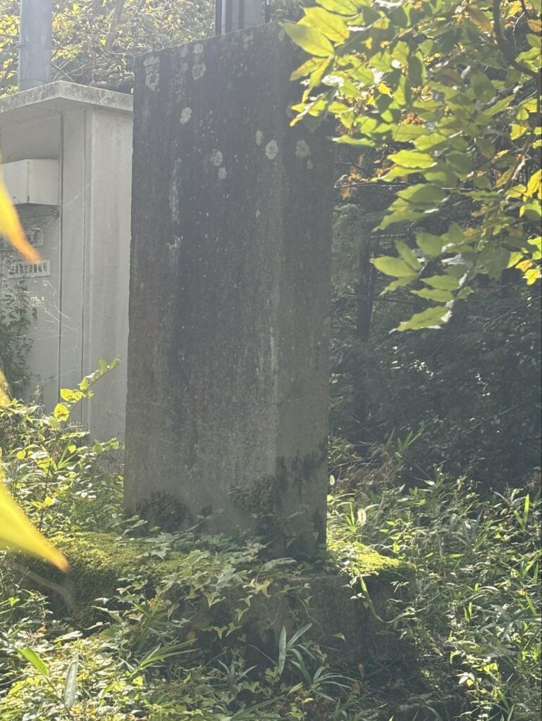 バス停の後ろ側に石碑があります。石碑との間にはフェンスがあり、石碑のすぐ前までは近づけません。ところでこの石碑は、この地域にとってとても重要な歴史の足跡が刻んでいることがわかりました。