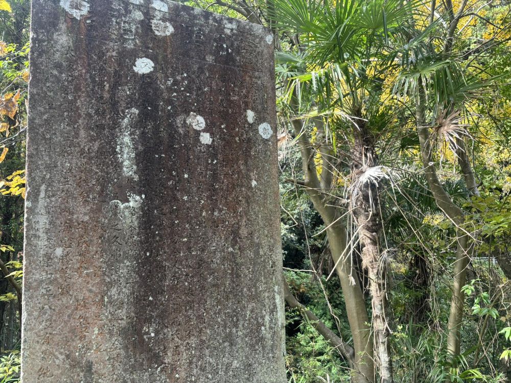 碑文の冒頭部分には「高向村難道碑 河内国錦部郡高向至滝畑山路険悪民苦於文通運輸焉高向村村長西定治郎」と刻まれています。「当時の河内国錦部郡高向村から滝畑方面への山道が険しいために人々が苦しみ、物の輸送や手紙のやり取りに苦労していた」という意味が書かれています。