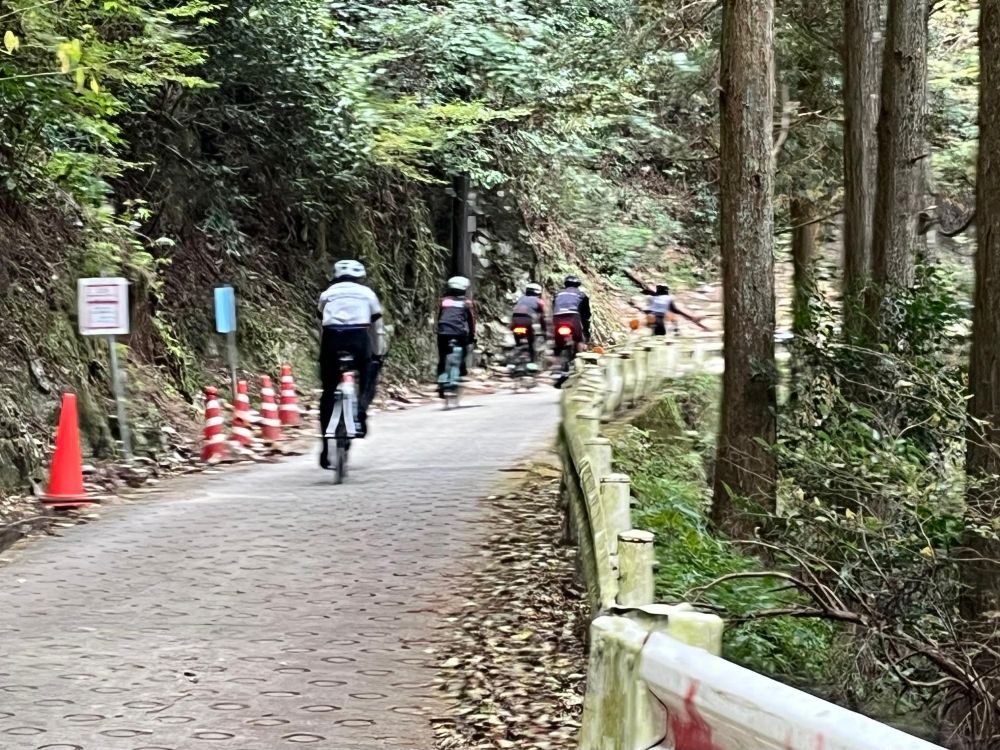 (河内長野滝畑で蔵王峠方面に向かって自転車で登っていく人たち)