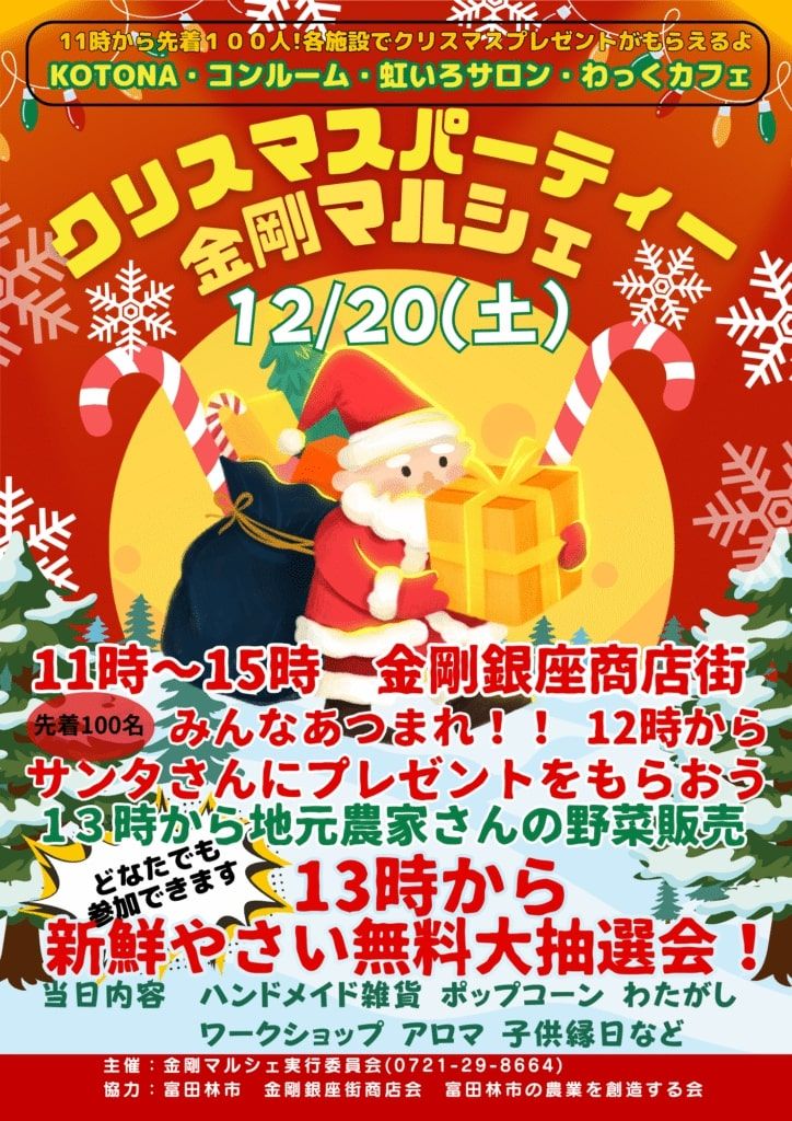 当日は12月20日土曜日11時から先着100名にサンタクロースからプレゼントがいただけます。さらに13時からは今年最後の新鮮野菜無料販売と大抽選会が予定されています。