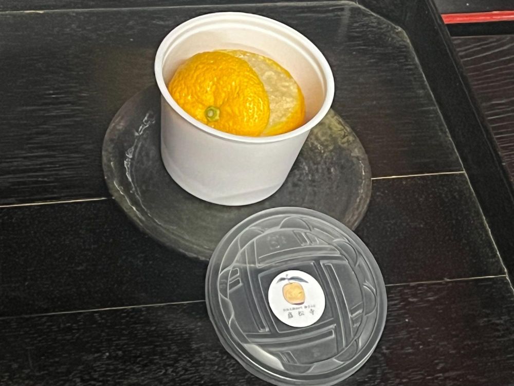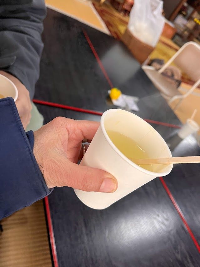 柚子みそが配られる前に少し待つ時間があり、本堂内で柚子茶を頂きました。