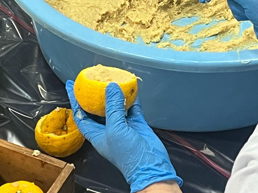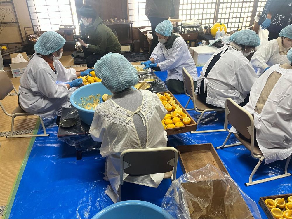 さて、2年前に一度柚子みそづくりの現場に行ったことがあります。これは一般公開しておらず、報道陣向けに公開しているもので、柚子みそを配る2日前の19日のお昼に寺の本堂で行われているものです。