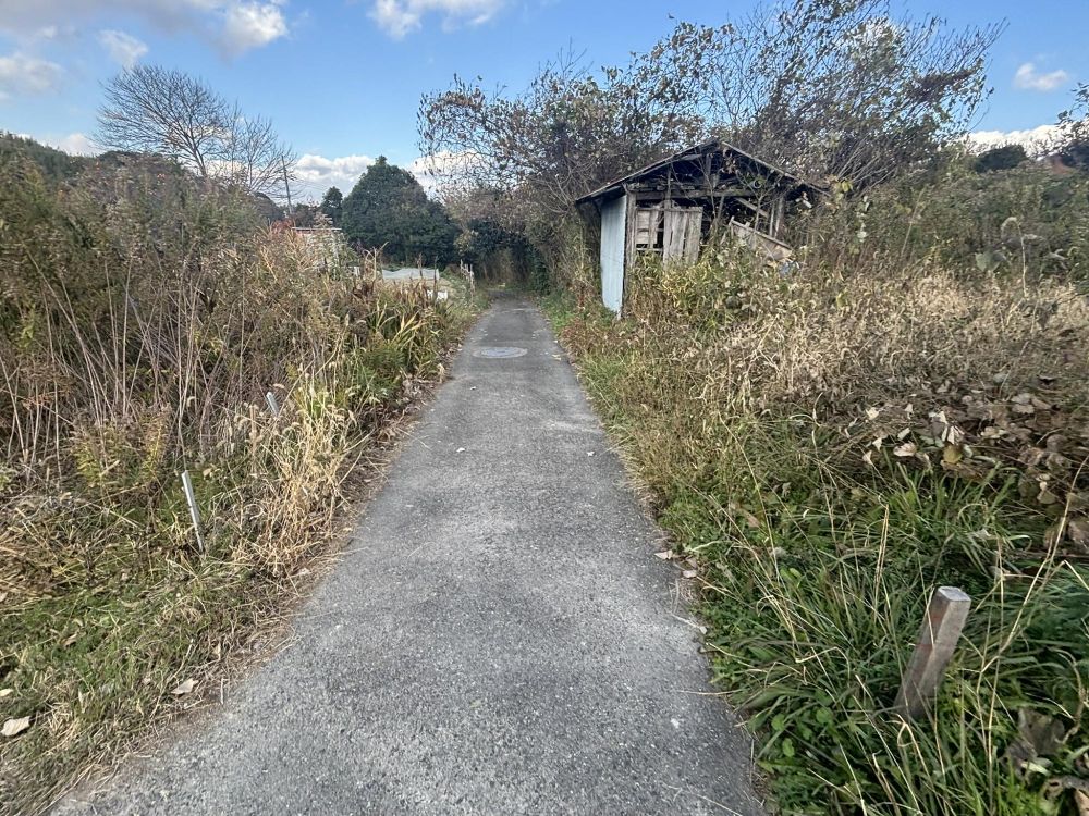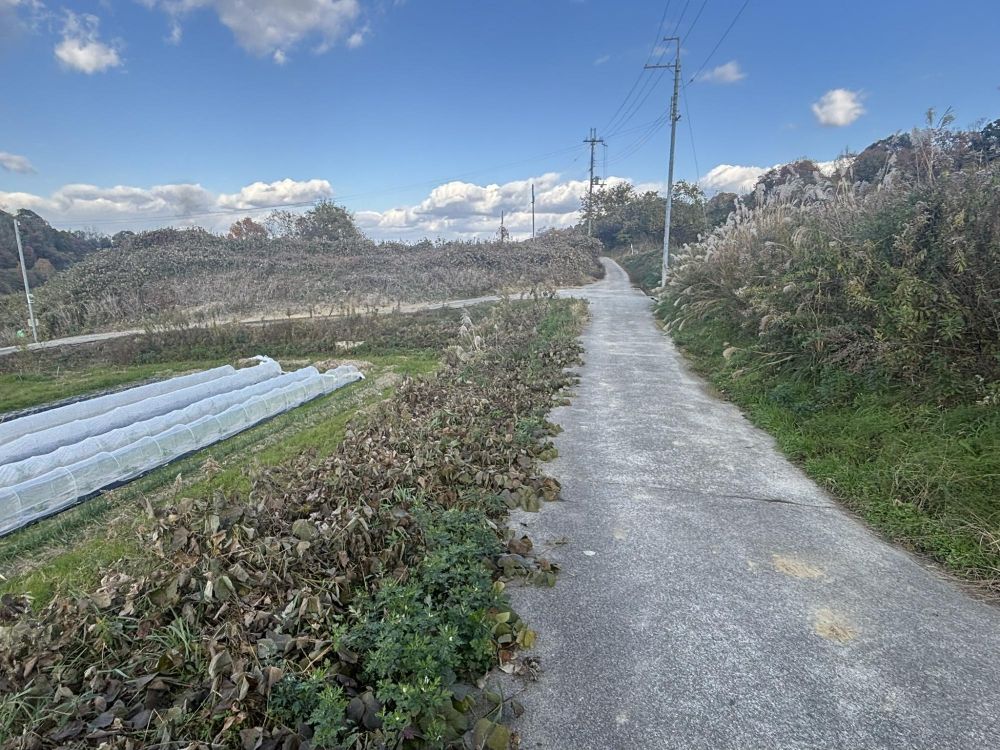 しかし、逆方向に歩いていくと画像のように非常に細い道になっています。アスファルトではなくコンクリートの道です。