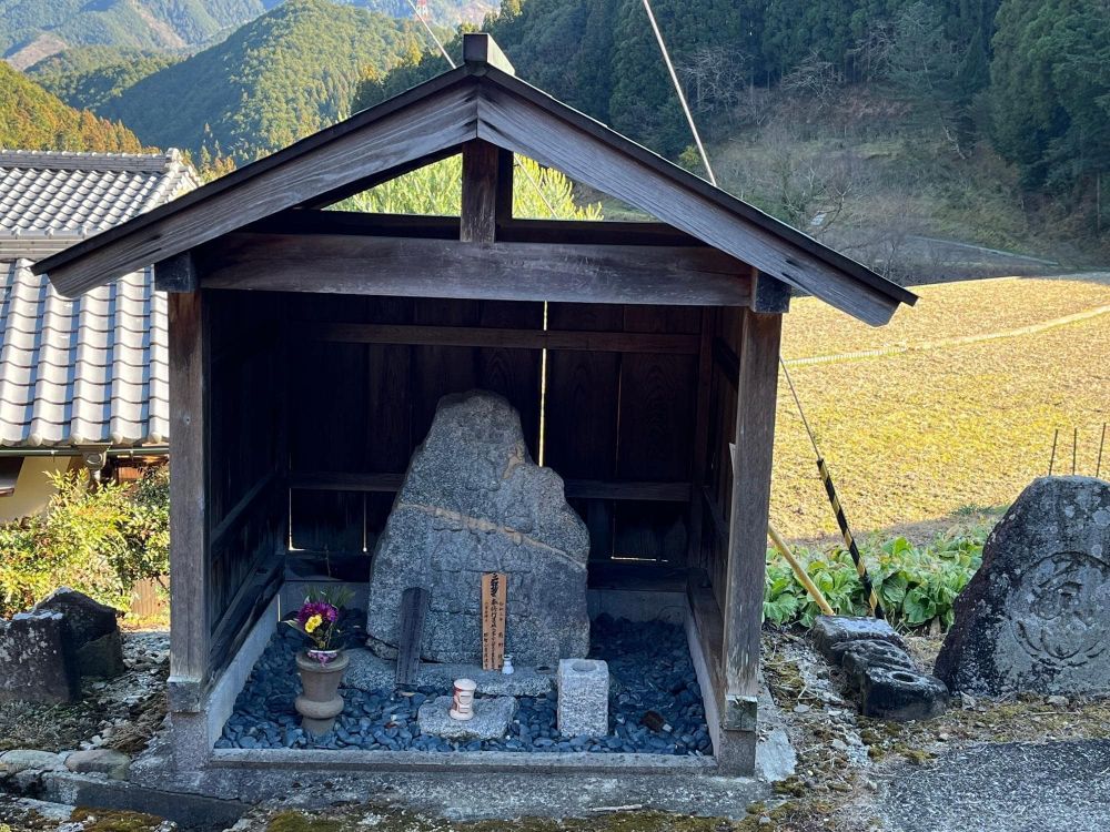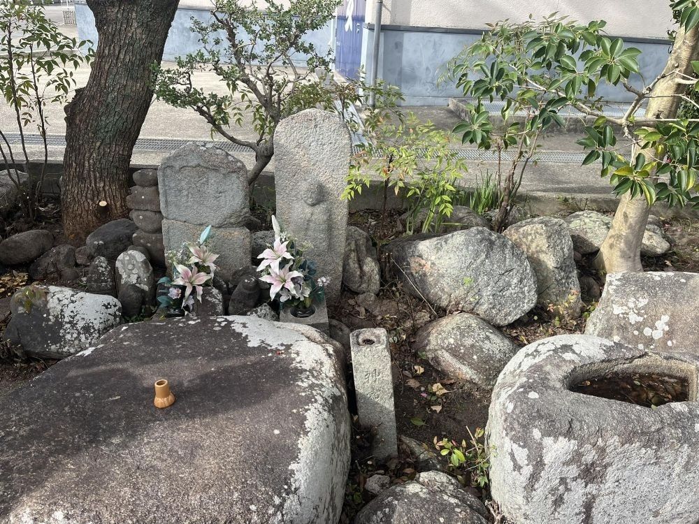 (大日寺境内にあるキリシタンゆかりのヤソ地蔵。中央に十字らしきものが見える)